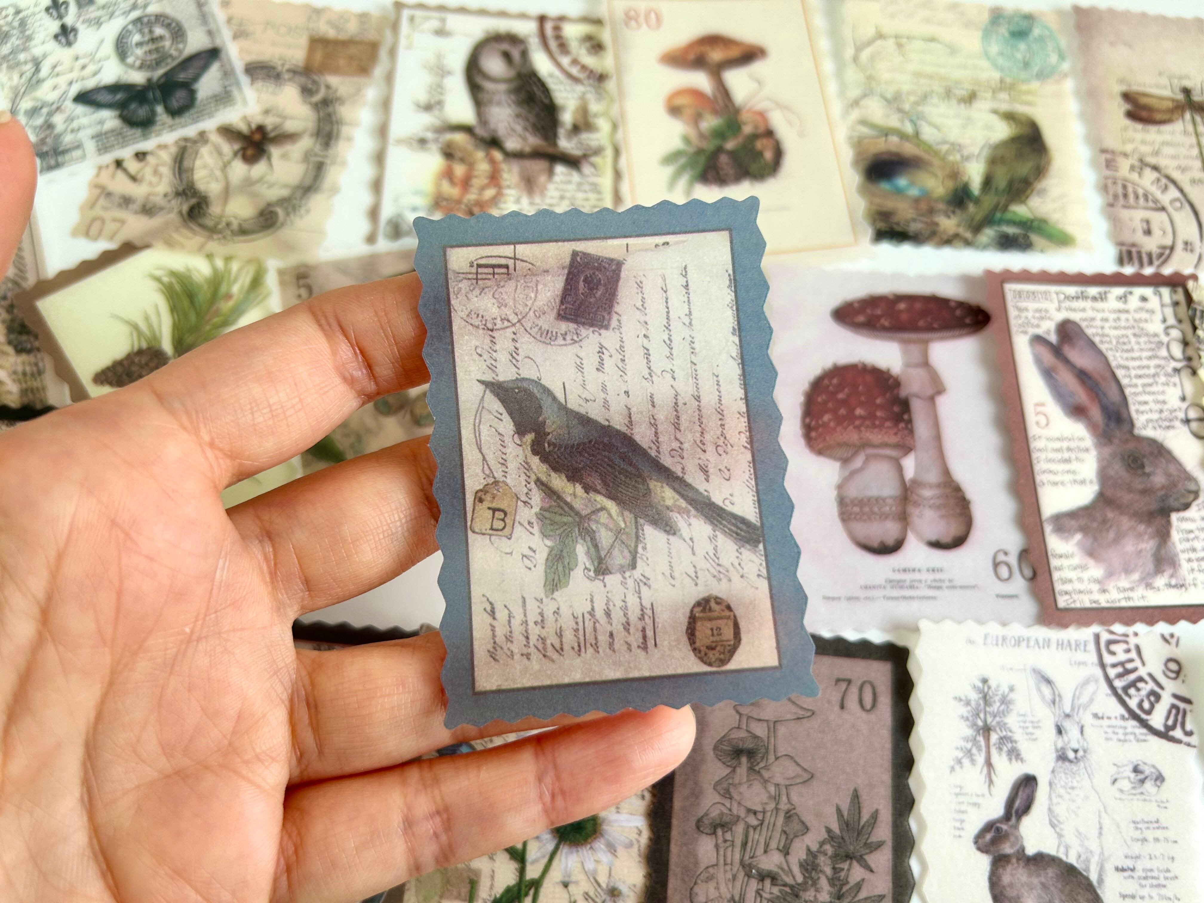 大きめの切手型シール ステッカー/森の動物と植物柄