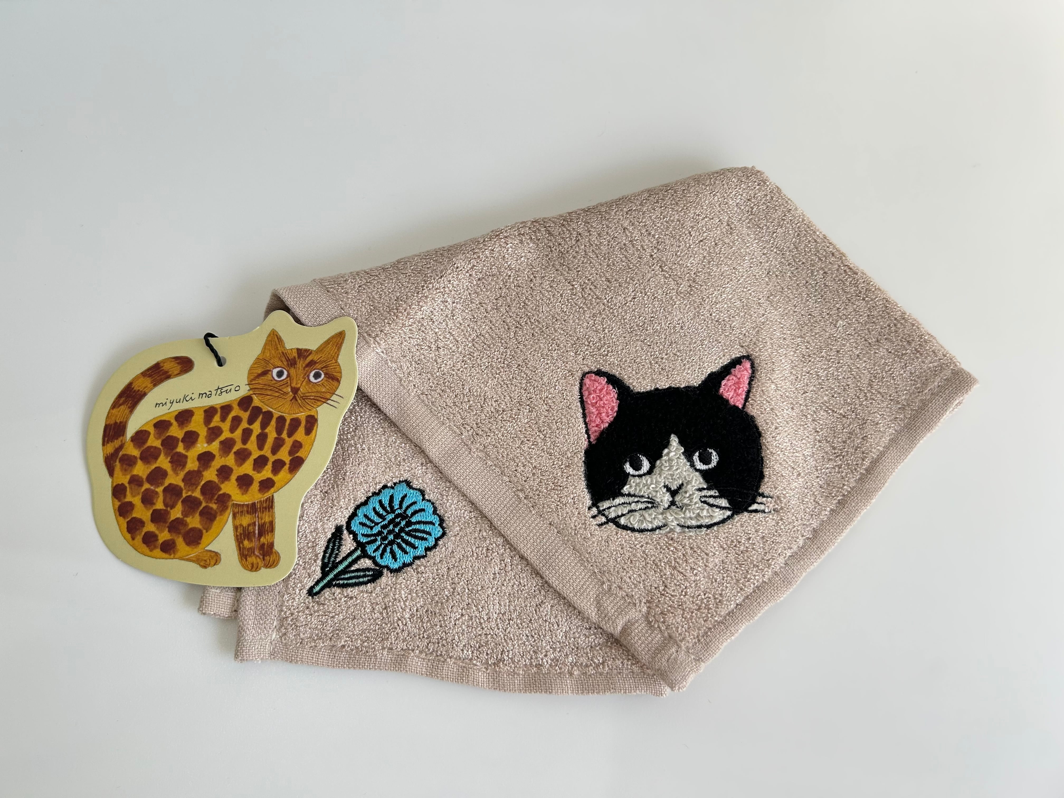 松尾ミユキ/ネコの刺繍入りハンカチタオル