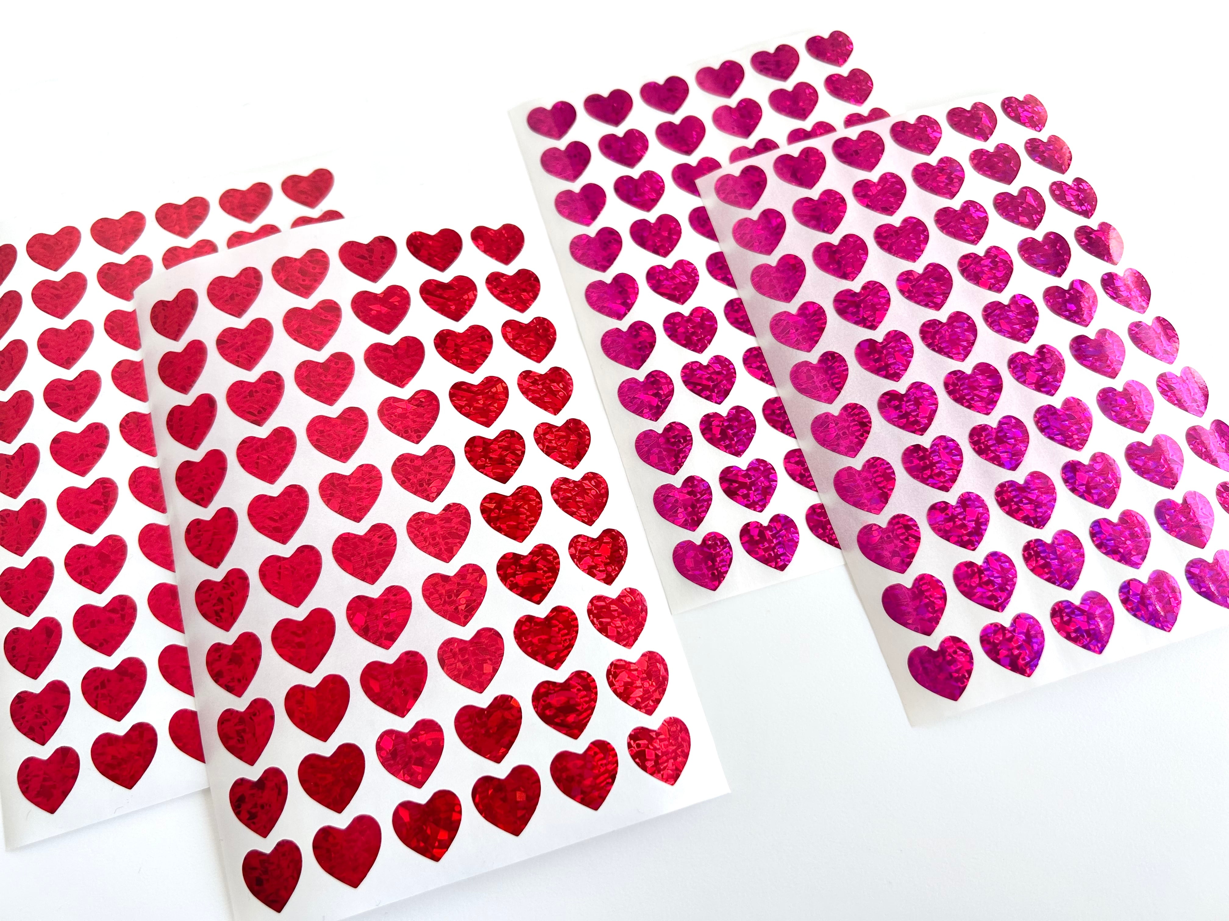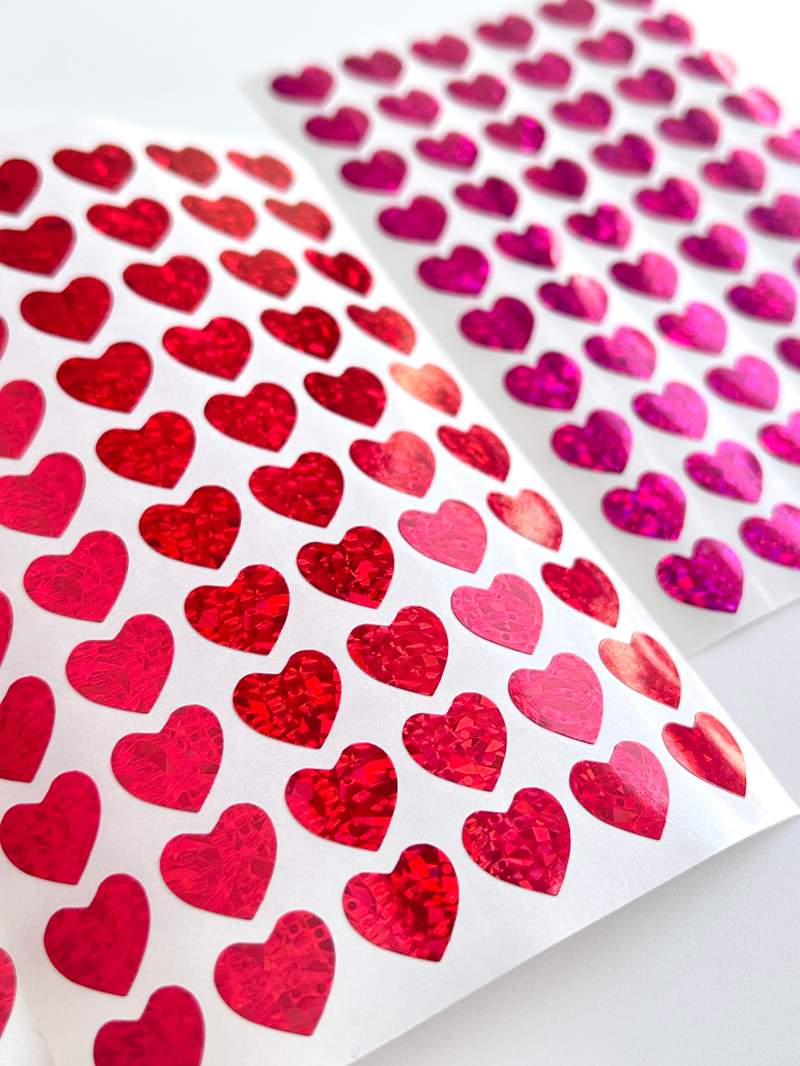 キラキラのホログラムにポップなカラーがとても可愛いハート型のシール。