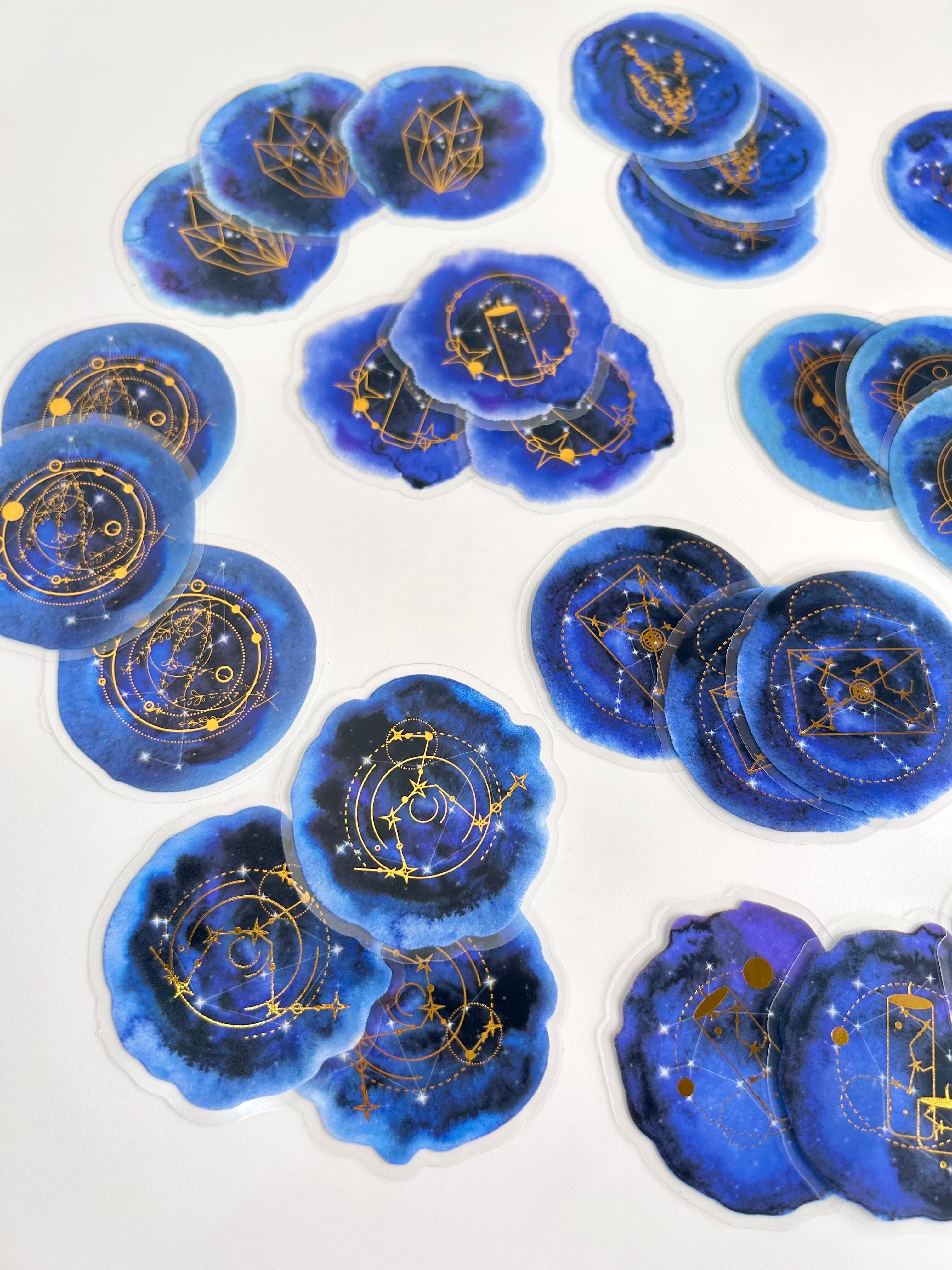 金の箔押しが綺麗な宇宙な模様のステッカーです。