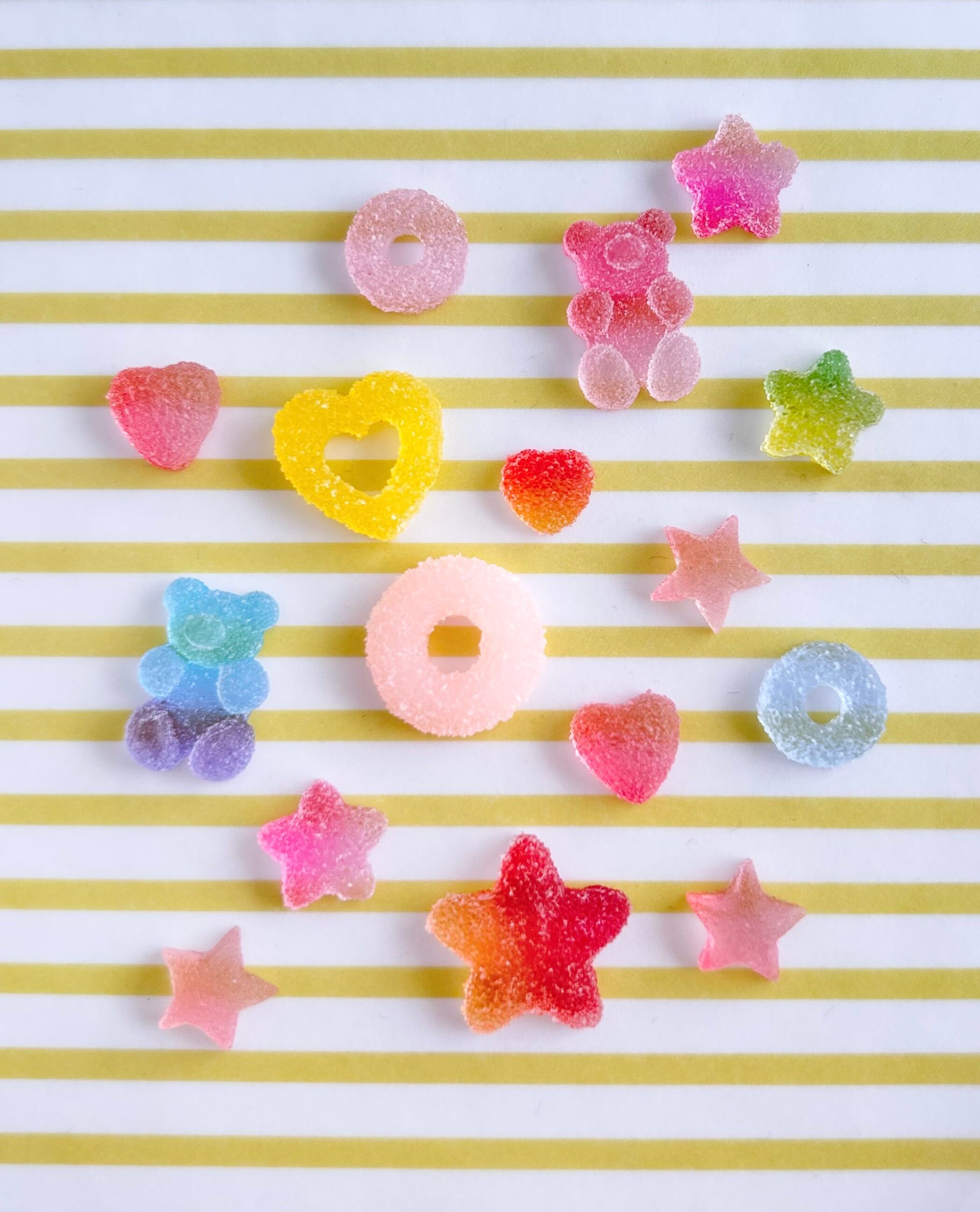 まるでお砂糖がかかったゼリー菓子のような、ザラメのキャンディのような可愛いパーツ。