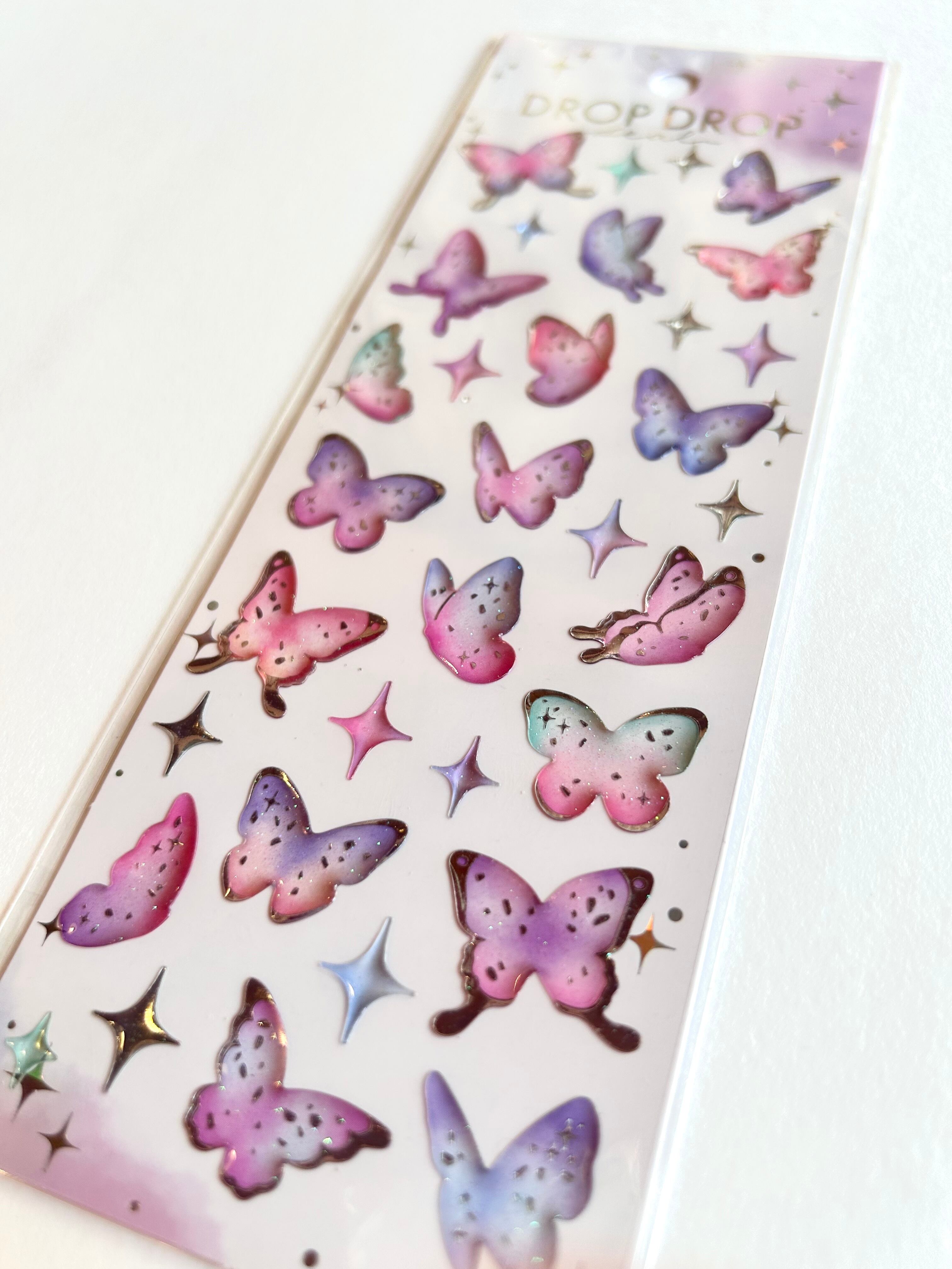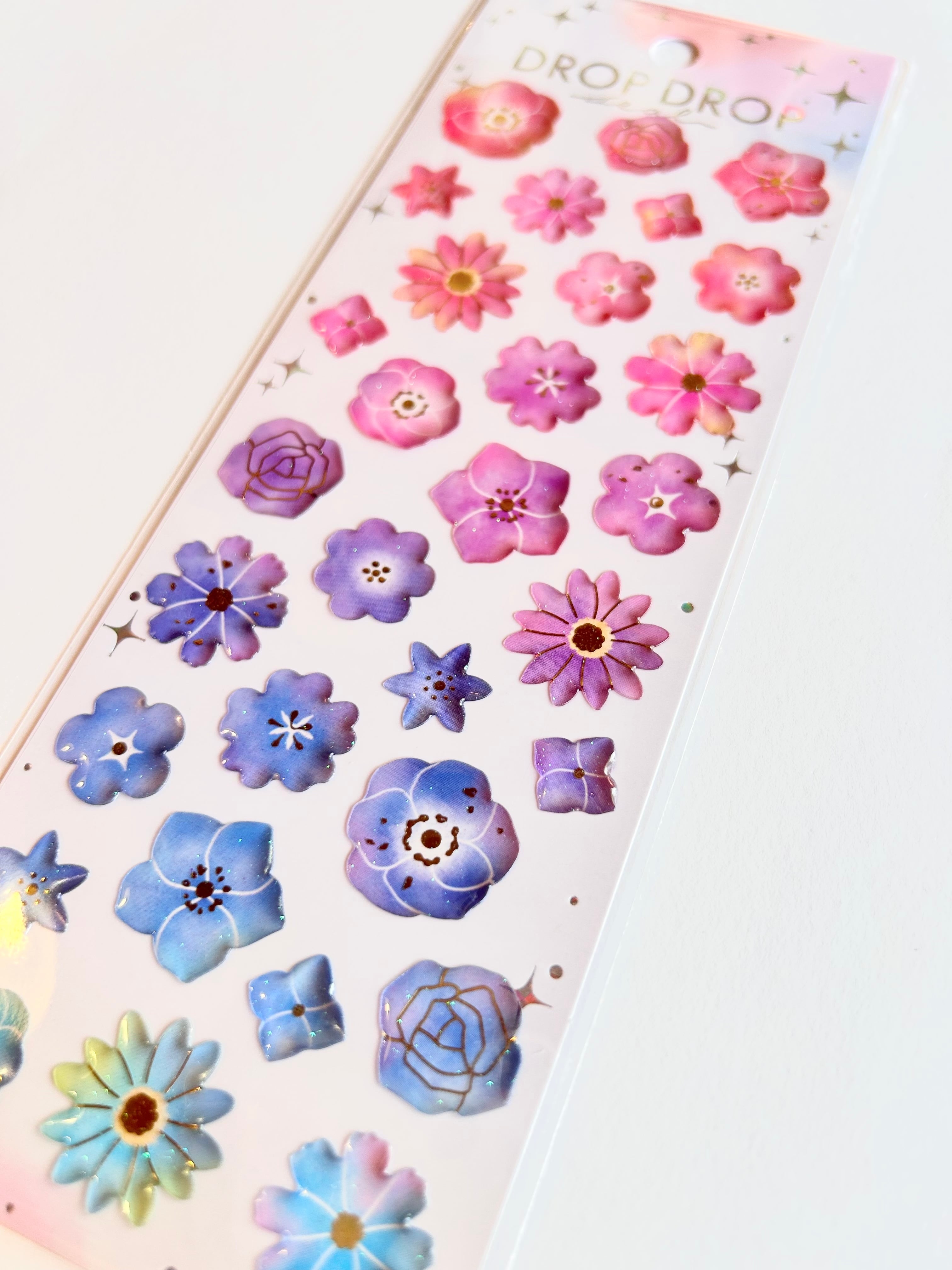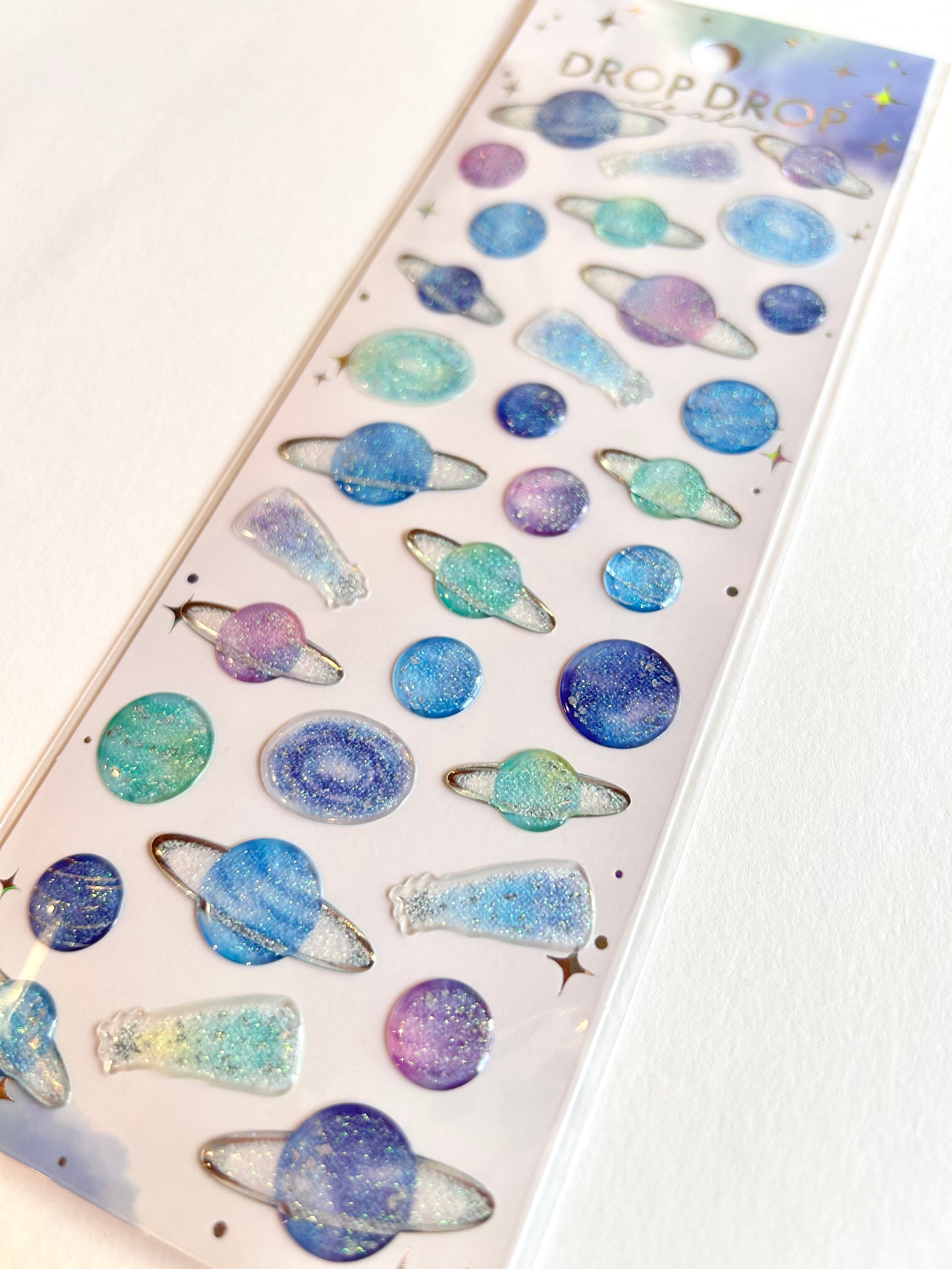 ツヤツヤでカラフル、少し膨らみのある透明シールです。