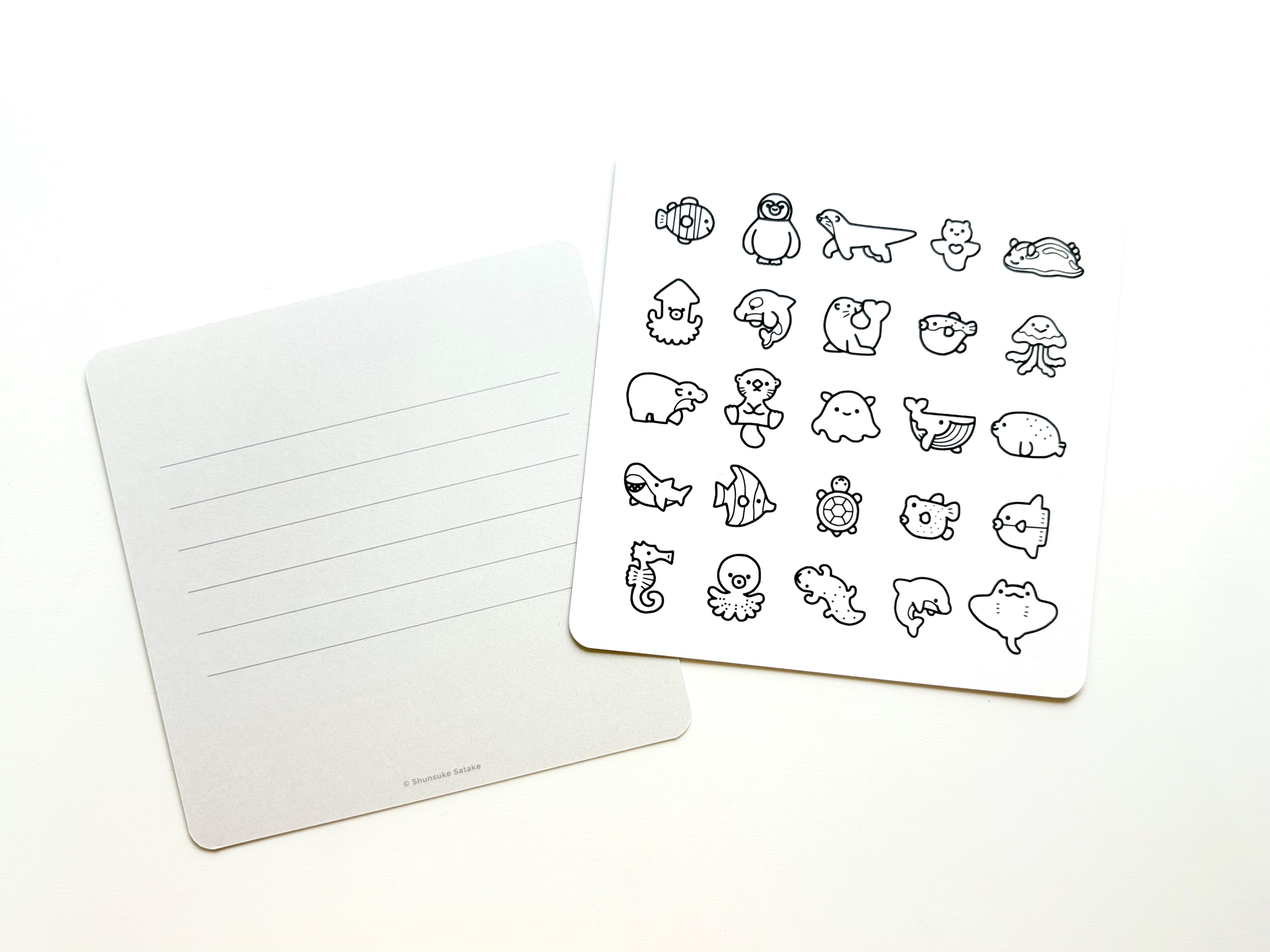 サタケシュンスケデザイン/四角いカード 海の生き物柄