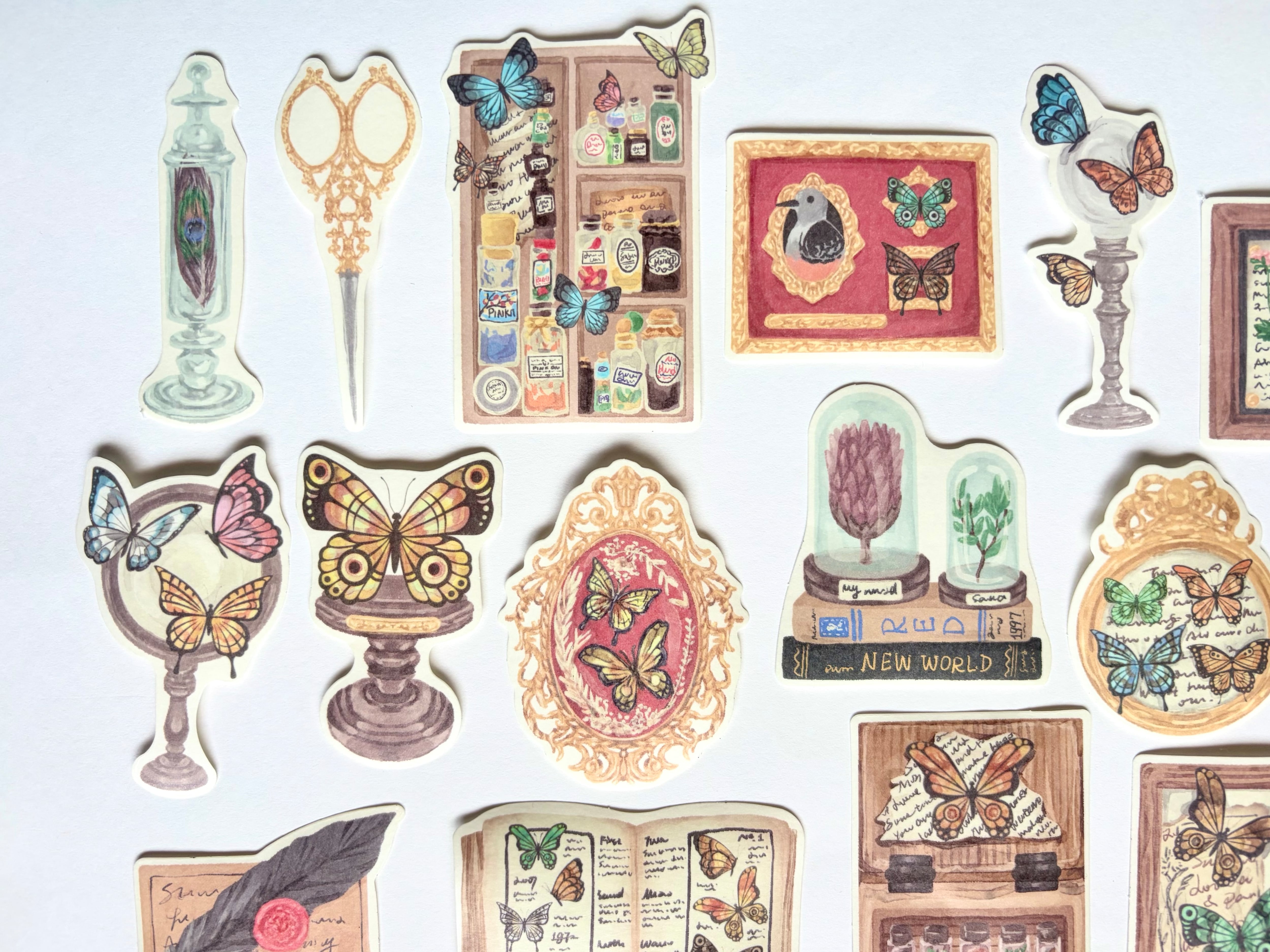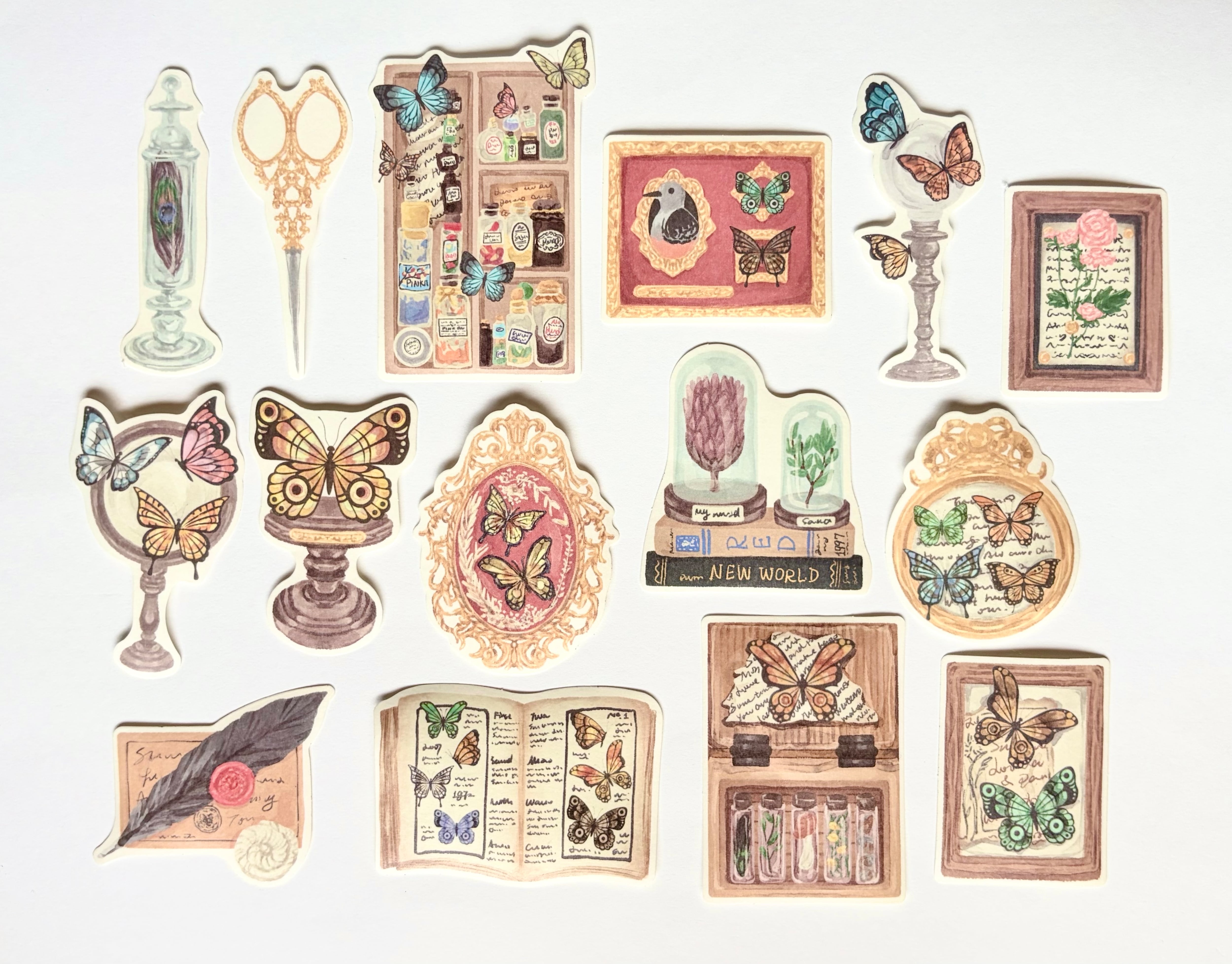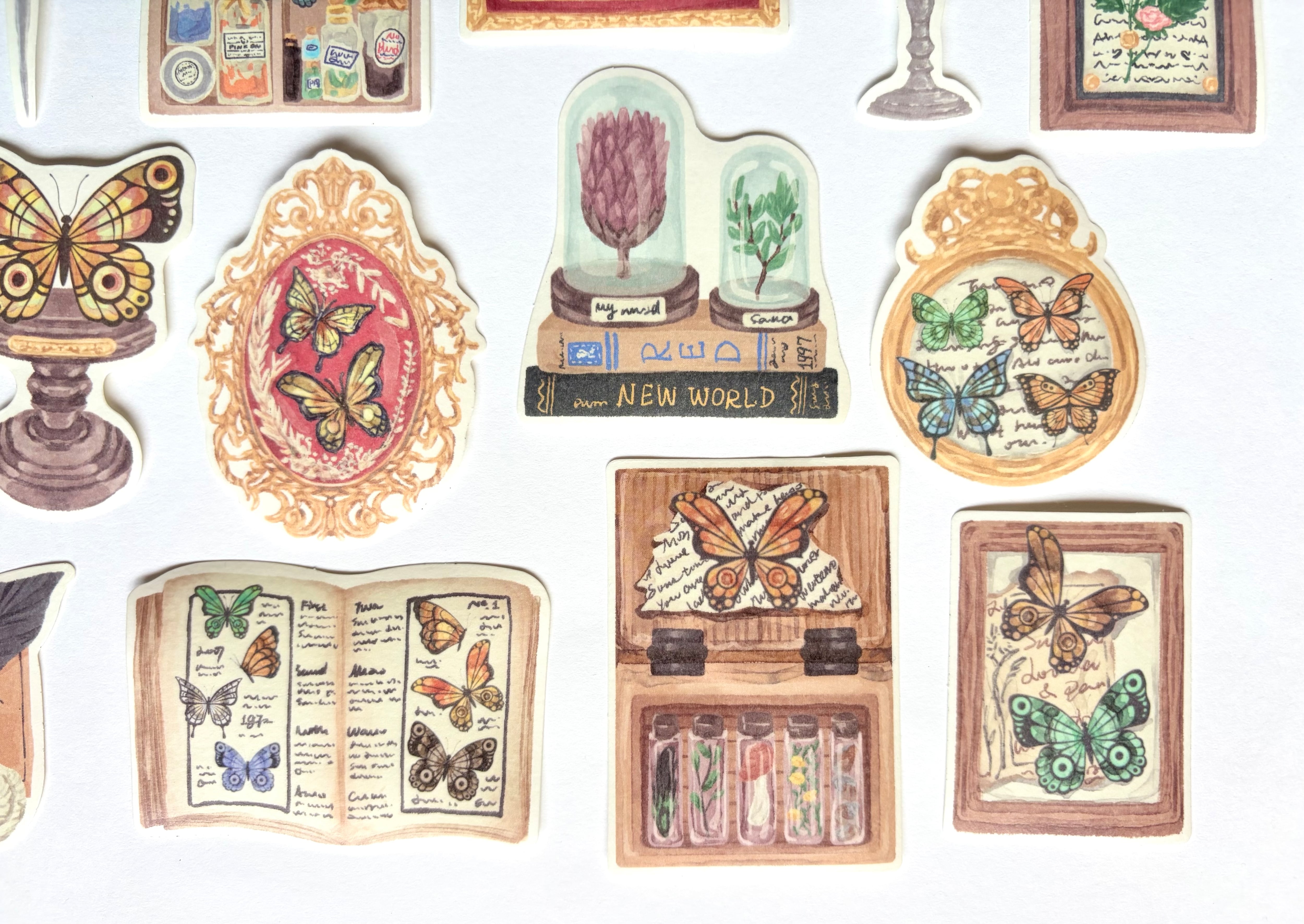 蝶と装飾イラストのステッカーセット