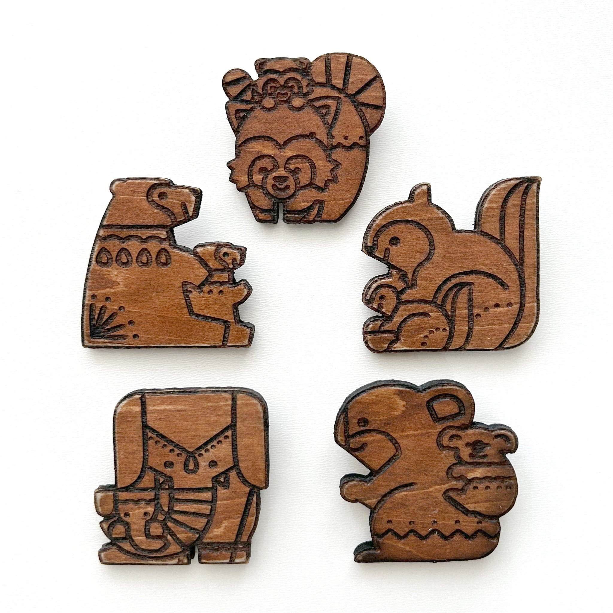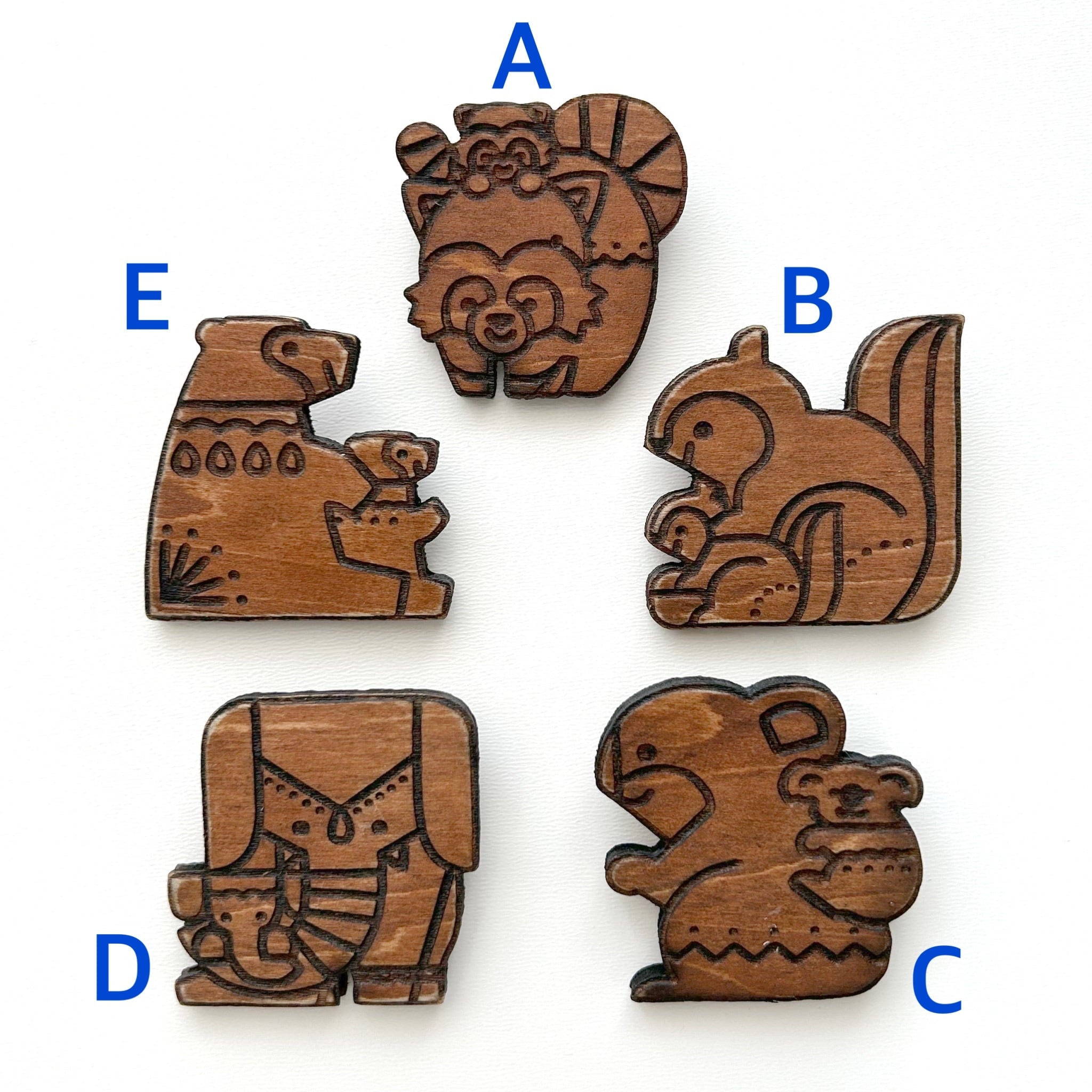 サタケシュンスケデザイン/木製ブローチ アニマル親子